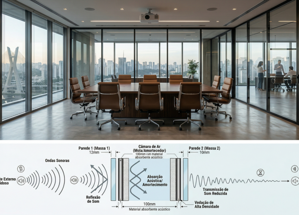 Divisórias Retráteis de Vidro: Acústica e Corporate Lounge SP | PDF